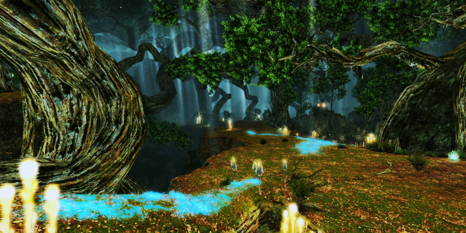 ノルヴラントの中央に位置する湖畔地帯。エルフ族の聖地とされる地であり、紫の葉を持つ独特の樹木が茂る